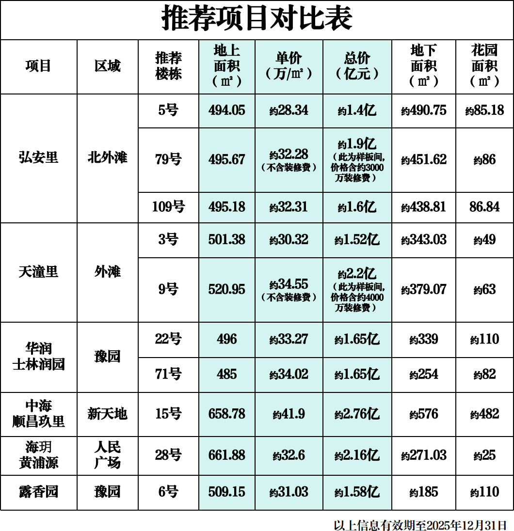 本次推薦約500㎡的房源,均為各項(xiàng)目的樓王或次樓王,故所推房源單價(jià)均為各項(xiàng)目較高值。
